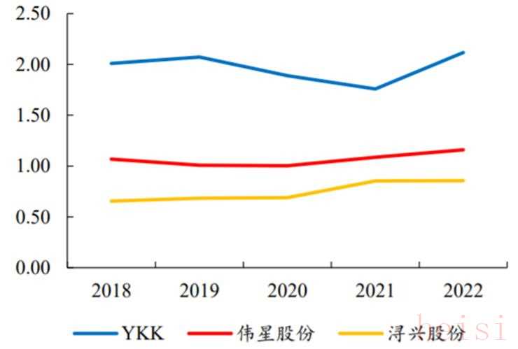 相对于海外同行,伟星股份重要武器之一便是性价比。2022年,YKK拉链平均销售价格为2.1元/条,而伟星股份仅为1.2元/条,前者是后者的1.8倍。