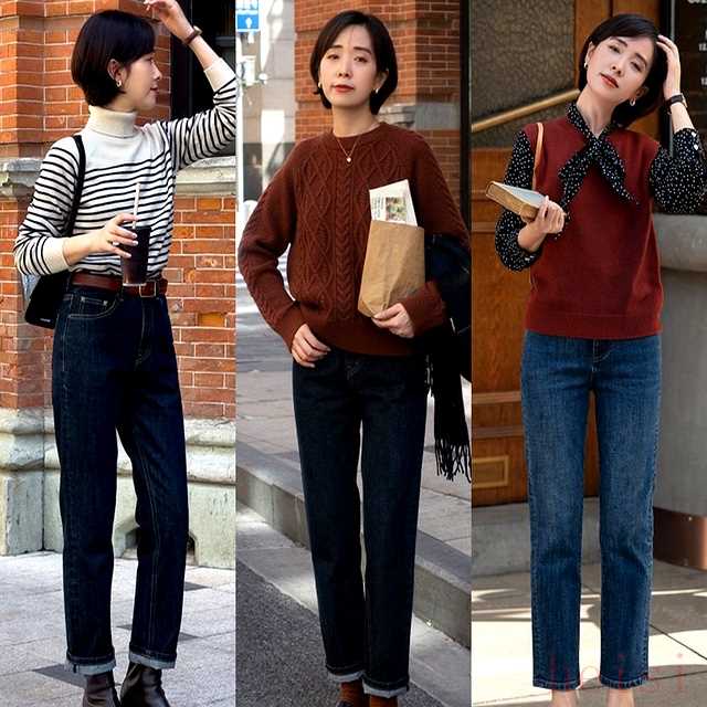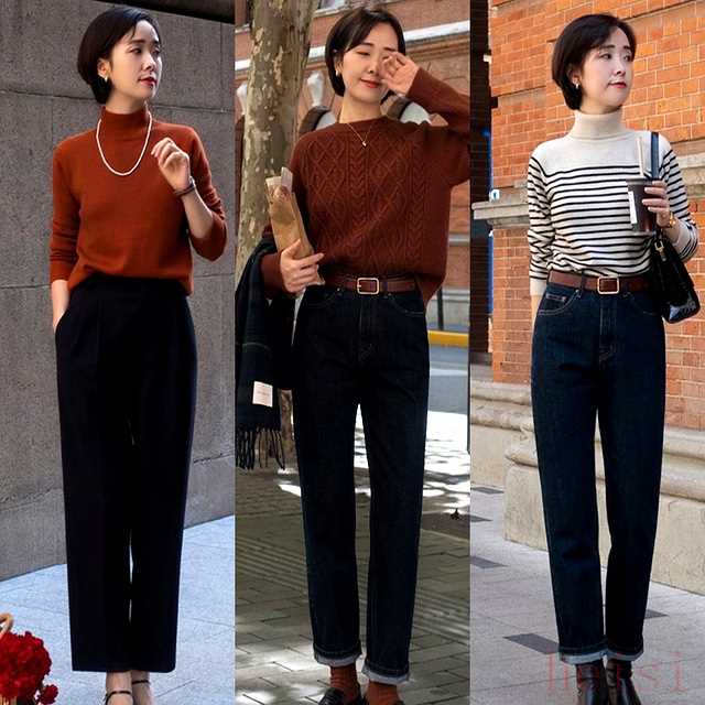 牛仔烟管裤大腿围比实际腿围多2厘米,留给秋裤,又不晃荡;高腰直筒裤腰头卡在肚脐上2厘米,胃被轻轻收住,吃半碗饭就饱,省钱也省卡路里。