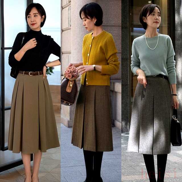 毛呢直筒裙长度定在脚踝上10厘米,配短靴露一截袜子,别人以为你精心搭配,其实是裙长固定了视觉分割线,省掉思考时间。