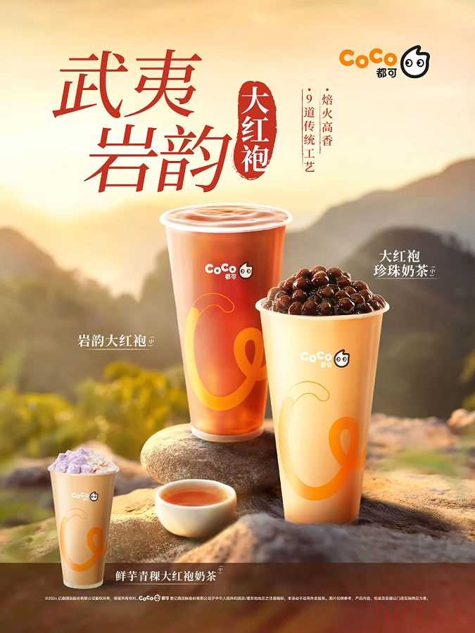 联名之外,始终把产品品质放在首位的CoCo都可,从原料选择、制作工艺、食安管理等各方面都精益求精。如甄选武夷山核心产区的大红袍鲜叶,以“三叶中开面”为标准采摘、经历九道传统工序;秉持助农和公益的初心采购日喀则的青稞,连续8年推广青稞这个超级谷物;升级选自横州的茉莉绿茶,推动“无糖也好喝”的健康理念。不难发现,“岩韵大红袍”“清香茉莉绿”和青稞系列多年来深受大众喜爱。