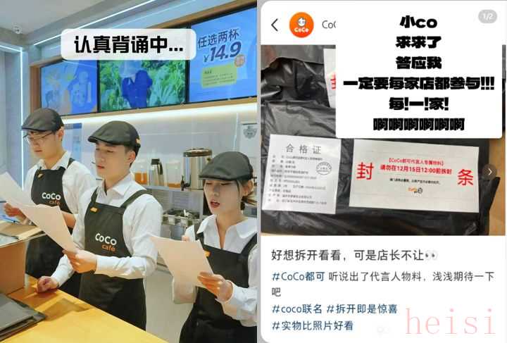 对于本次活动,颇显CoCo都可的真诚与重视。据了解,在官宣之前近一个月的时间,CoCo都可就着手内部培训,由总部下发《代言人活动培训资料》,门店研读学习后,每家活动门店至少两位伙伴参加考试并由总部公示成绩,不合格门店参加补考。据悉,两轮考试后超过90分的门店达99%。此外,本次活动的物料也有着保密规定,活动物料到达门店后,禁止在规定时间节点前拆包(严格禁止偷跑行为)。