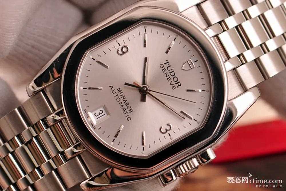 Tudor帝舵 实用主义至上的“田径场”大众选手帝舵作为劳力士集团旗下的知名品牌,以其高性价比和年轻化风格著称,致力于追求运动与优雅兼具的市场定位。比如这块隶属于帝舵Monarch王者系列(已停产,海鲜市场大概五六七千块能买到的样子),是品牌1990年代推出的经典正装腕表,主打优雅复古风格。近似椭圆形的异形表壳是最核心特征,表壳采用精钢材质,尺寸约为36mmx42mm,佩戴效果差不多38mm,算是选取了一个长宽比例贴合椭圆形的设计,表耳线条圆润流畅,搭配了拱形亚克力表镜,有点像是在复刻上世纪中叶的Art Deco美学。