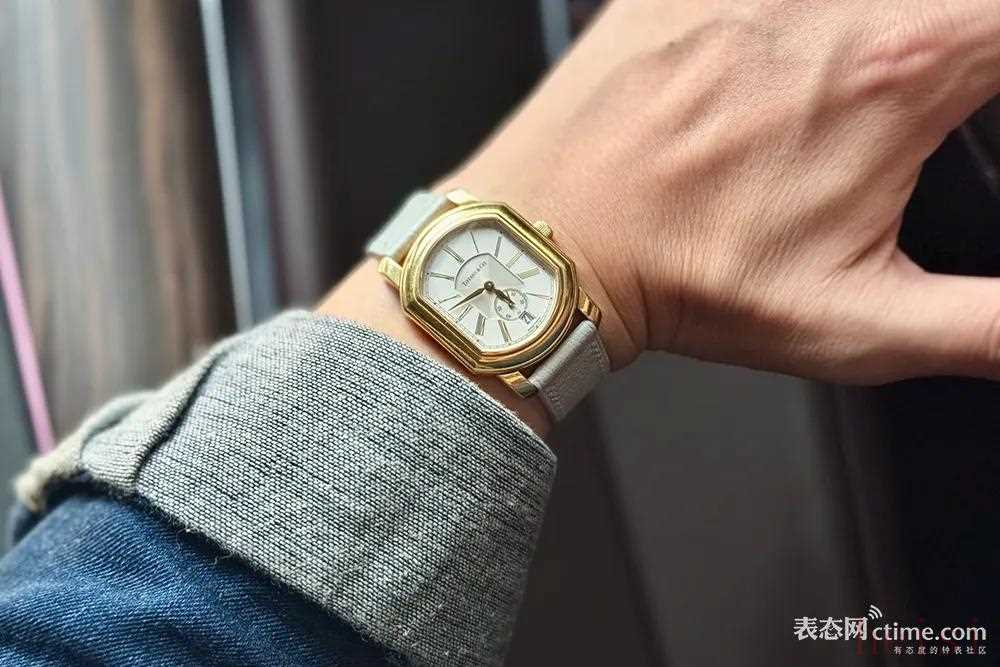 Tiffany & Co.蒂芙尼 美式经典中的优雅弧线1980年代,蒂芙尼在专业制表领域的探索悄然展开。彼时瑞士制表业正从石英危机中复苏,而这家美国珠宝商选择了一条独特路径——将百年珠宝工艺与欧洲机械美学融合。其中,Tiffany的这块双椭圆“田径场”壳腕表,与Daniel Roth的早期作品有着深厚的渊源,也从另一方面展现了近似独特的制表哲学。18K金表壳的“田径场”轮廓,或许是1990年代制表界几何美学追求完美的体现。