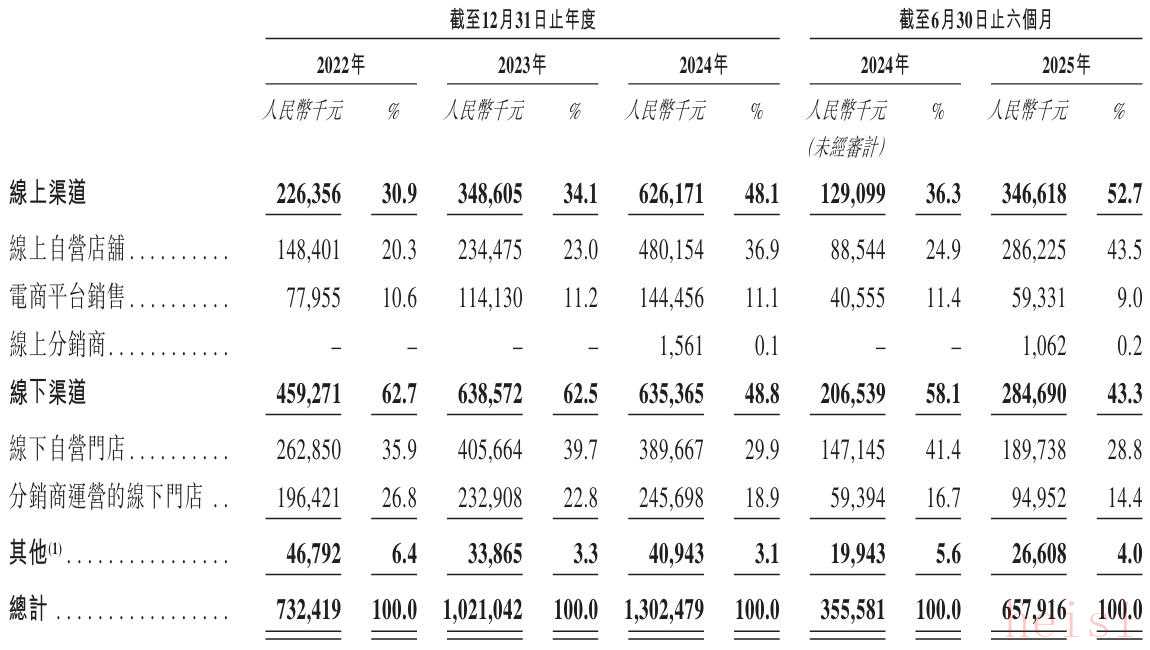 然而根据最新招股书披露的数据,截至2025年6月30日,公司在中国不同地区设有568家常设线下门店,其中包含257间线下自营门店及311间分销商运营的门店,及100家在线自营店铺。按此数量看,实际门店规模仅相当于此前官网显示门店数量的60%。
