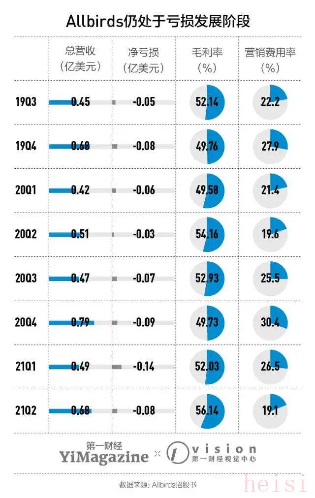 虽然成功上市,但Allbirds的规模仍与运动巨头们相去甚远。财报显示,Allbirds 2021年Q1的营收是0.49亿美元,同期Under Armour收入12.6亿美元,adidas营收62.16亿美元,Nike则为105.94亿美元。而且, Allbirds尚未实现盈利,2020财年公司的整体净亏损在0.26亿美元左右。