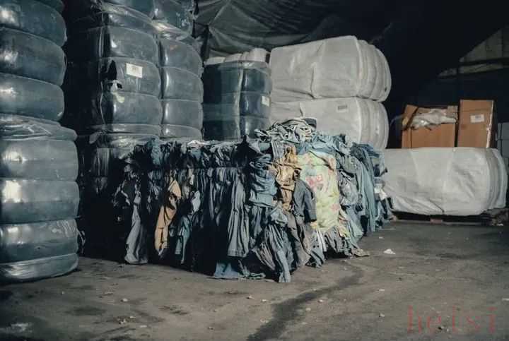 位于瑞典克里斯蒂娜港(Kristinehamn)的Re:newcell一家工厂,一件牛仔裤废料包正等着被粉碎并溶解成循环纸浆。图片来源:Re:newcell