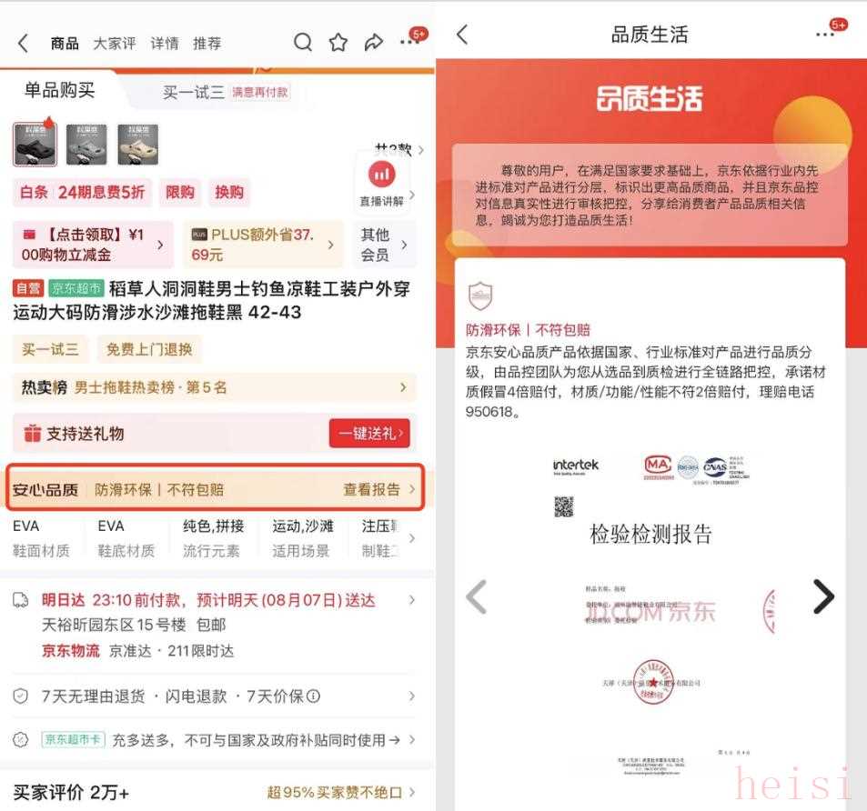 京东服饰用两把钥匙解开困局:一是掀起“安心品质标”可视化革命,引导商家将防滑、耐磨等质检报告可视化透传。在稻草人男鞋京东自营店铺,第三方专业机构出具的权威检测报告,详细展示了产品的用料、防滑性能、减震技术等品质细节,当用户清楚地看到35元拖鞋比25元的多出三层防滑纹和加厚EVA中底时,溢价便有了说服力。