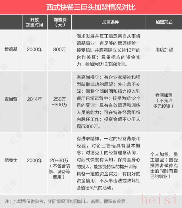 据了解,德克士的加盟费只需20-30万左右,对加盟对象的选择也相对宽松起来,和当时走高标准、高要求加盟路线的肯德基背道而驰。