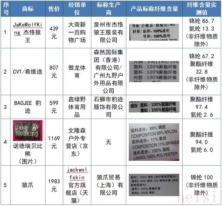 对于面料最基础的要求首先就是纤维含量标注的要正确,给消费者正确的产品信息。以下5款产品的纤维含量实测值与产品标称纤维含量存在差异,不符合标准要求,实际功能性有待考证。