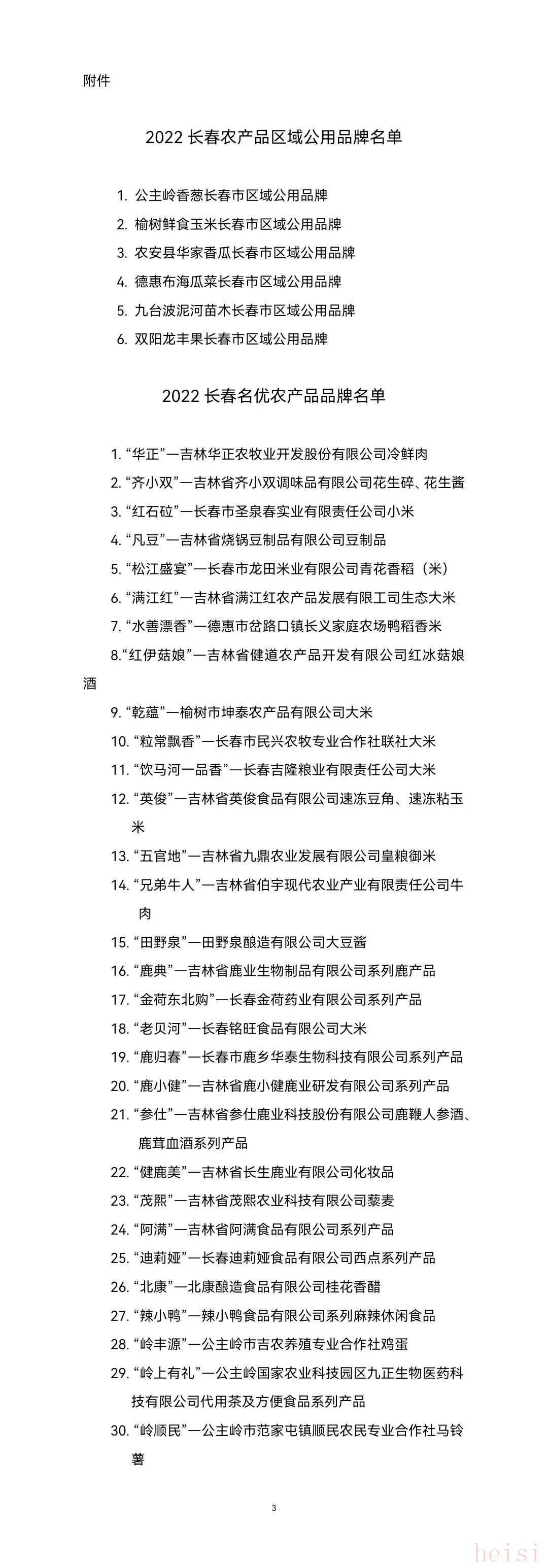 长春市人民政府关于认定2022长春农产品区域公用品牌和名优农产品品牌的通知长府函〔2022〕109号各县(市)、区人民政府,开发区管委会,市政府有关部门: