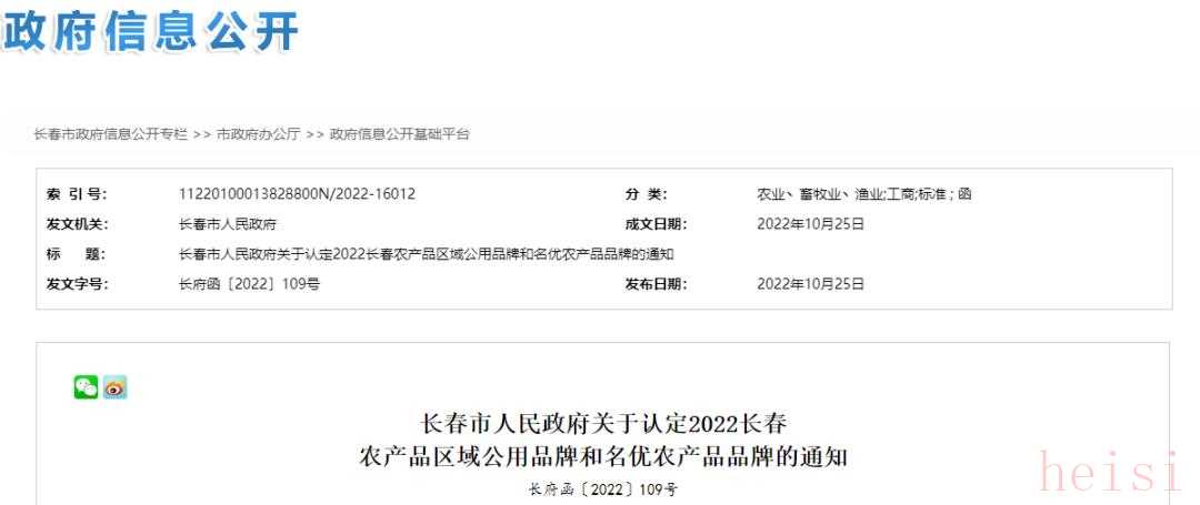 日前长春市人民政府网站发布长春市人民政府关于认定2022长春农产品区域公用品牌和名优农产品品牌的通知长春市政府同意认定6个品牌为2022长春农产品区域公用品牌30个品牌为2022长春名优农产品品牌↓↓↓