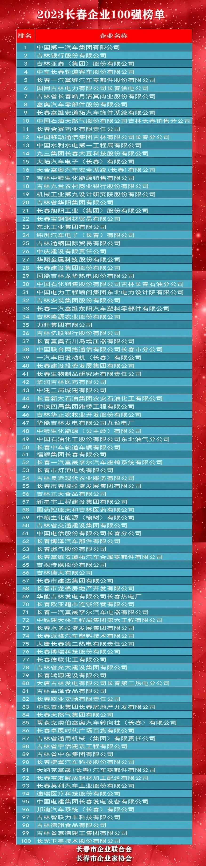 这是一个关于“2023长春企业100强”榜单发布的信息。