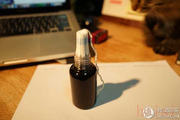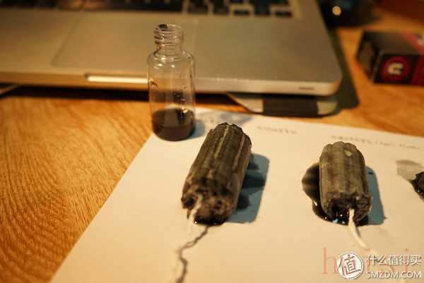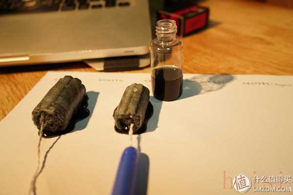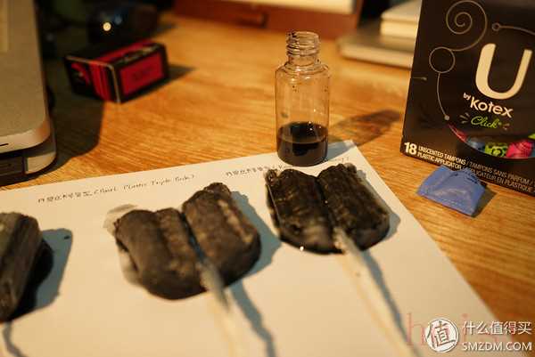 从瓶子里拔出来后(最左边第一个棉条),又适量往棉条上倒了一些水,让它吸收尽可能多的水。30ML的瓶子最后水还剩下上图那么多。