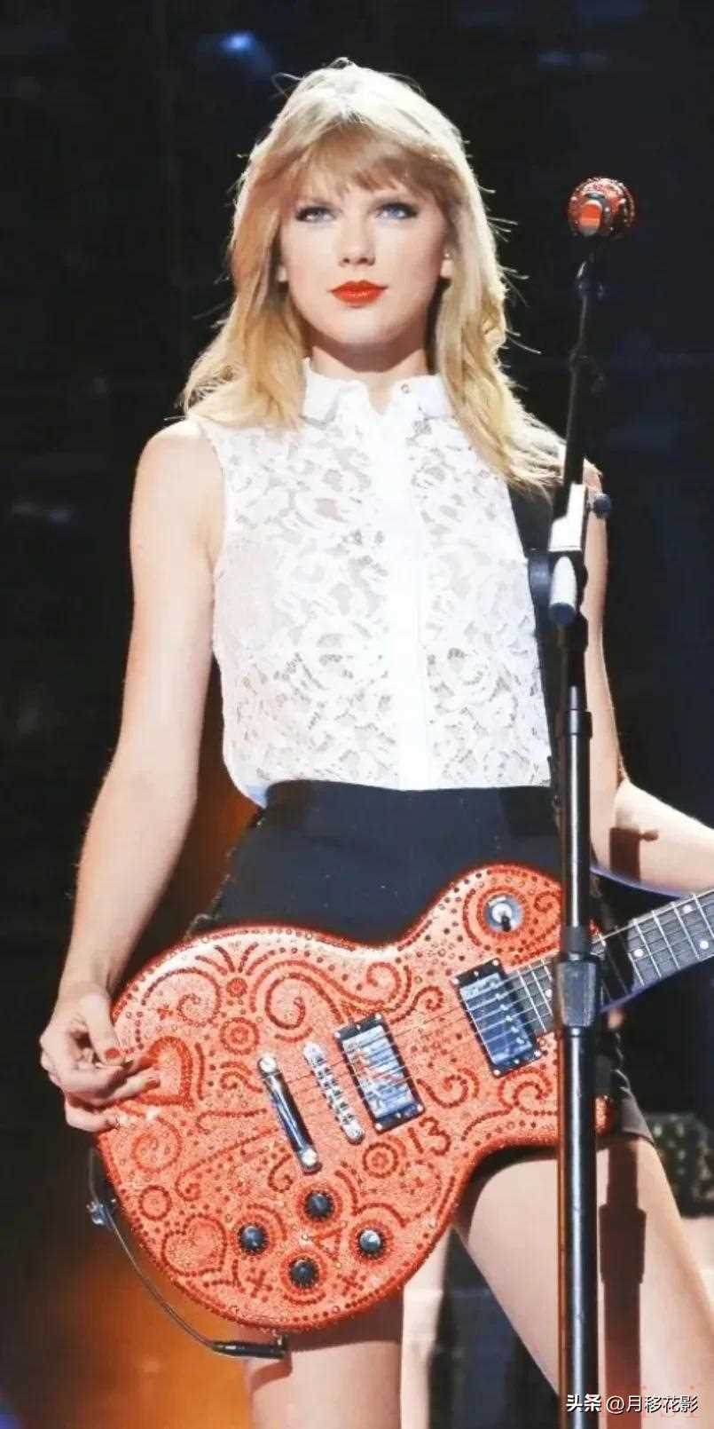 6. 泰勒·斯威夫特(Taylor Swift):美国流行歌手,金发碧眼加上高挑身材,让她在舞台上光芒四射,妆容大胆时尚,个性自信,用音乐和美丽征服了无数粉丝。