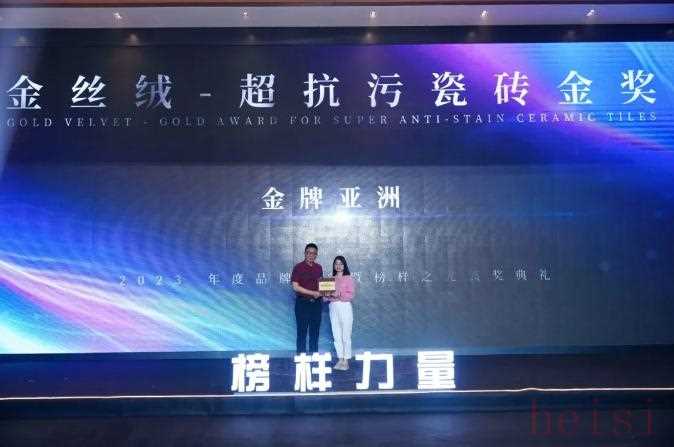 在这场榜样盛典上,金牌亚洲凭借超硬核实力的金丝绒超抗污柔光砖,在众多优秀品牌和产品中突围而出,斩获年度超抗污瓷砖金奖。
