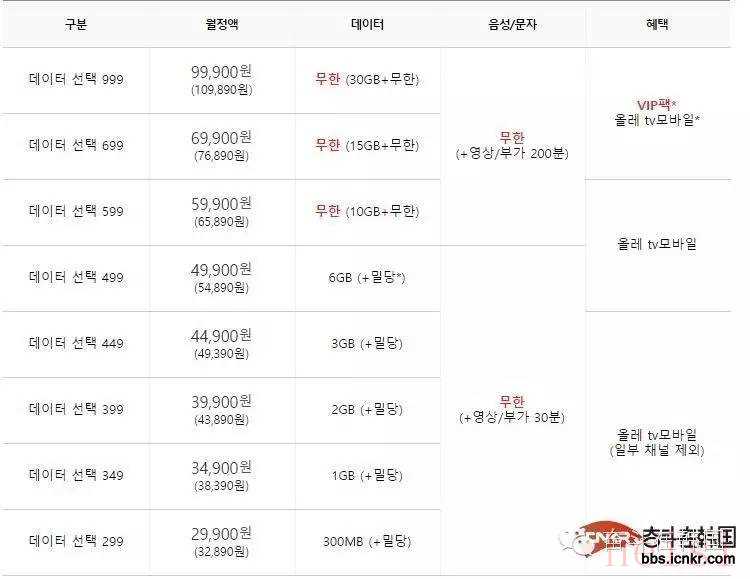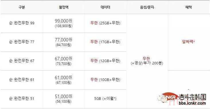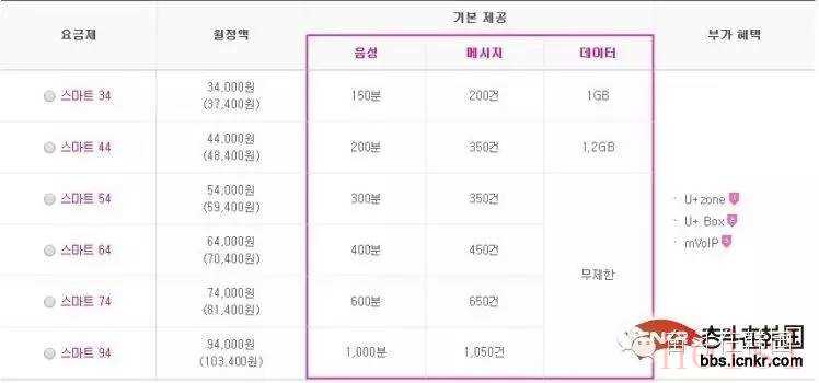 看了LG的感觉LG的好像也是很实惠的,54000韩币以上就是无限流量了。