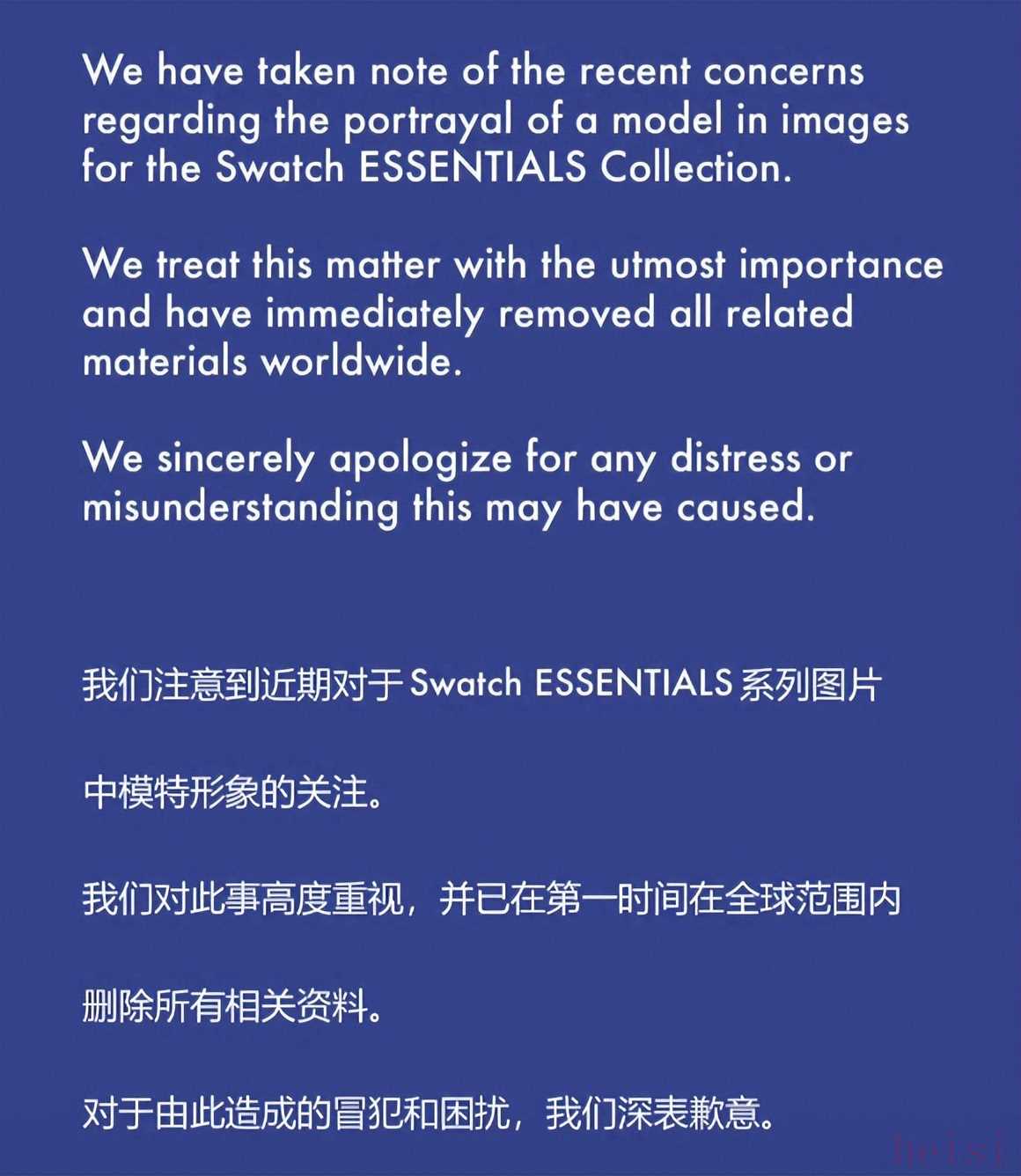 8月15日,瑞士手表Swatch(斯沃琪)在官网上发布了宣传照。