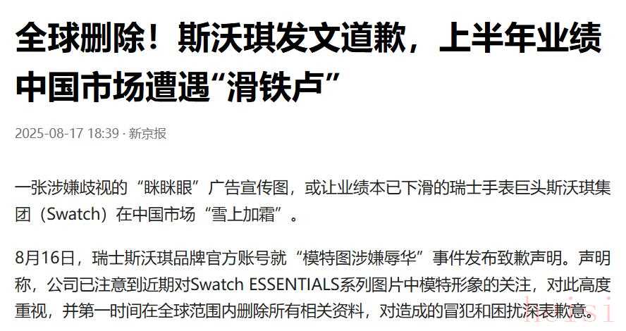 很显然,有了这一遭,斯沃琪下半年的销售额估计会蒸发大半,毕竟整个东亚市场都被他得罪完了。
