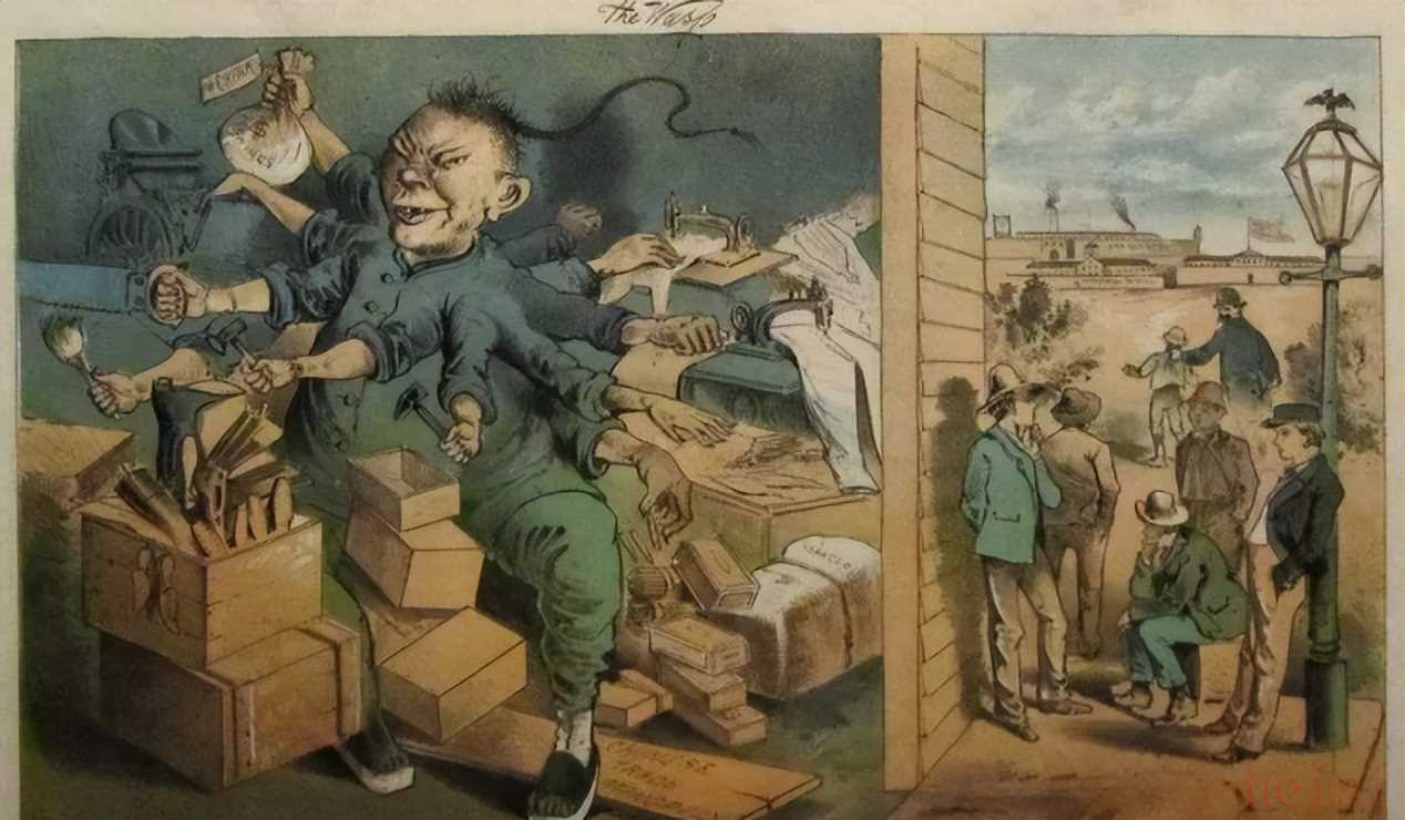 在19世纪的时候,美国对华人的态度转变为歧视。当时他们的一些图中,就将华工的形象画得贼眉鼠眼,还暗示华工抢了他们的饭碗。
