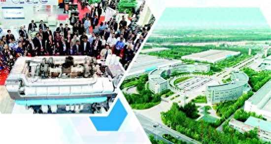 左图:2019年中东电力展上,潍柴博杜安发电动力受到全球客户瞩目。右图:潍柴工业园俯瞰图。