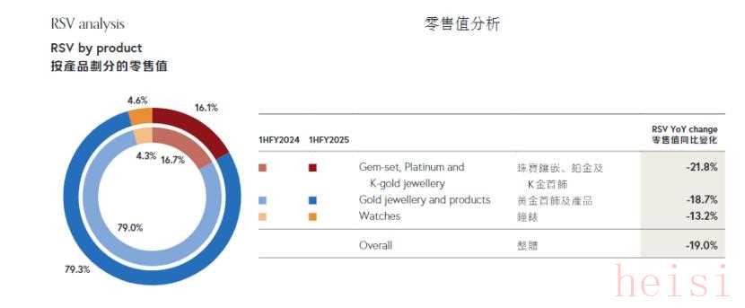 根据半年报显示,周大福的收入里,黄金首饰及产品的收入占比79%,珠宝镶嵌、铂金及K金首饰的收入占比为21%。这并非企业个案,也是行业的普遍性代表。