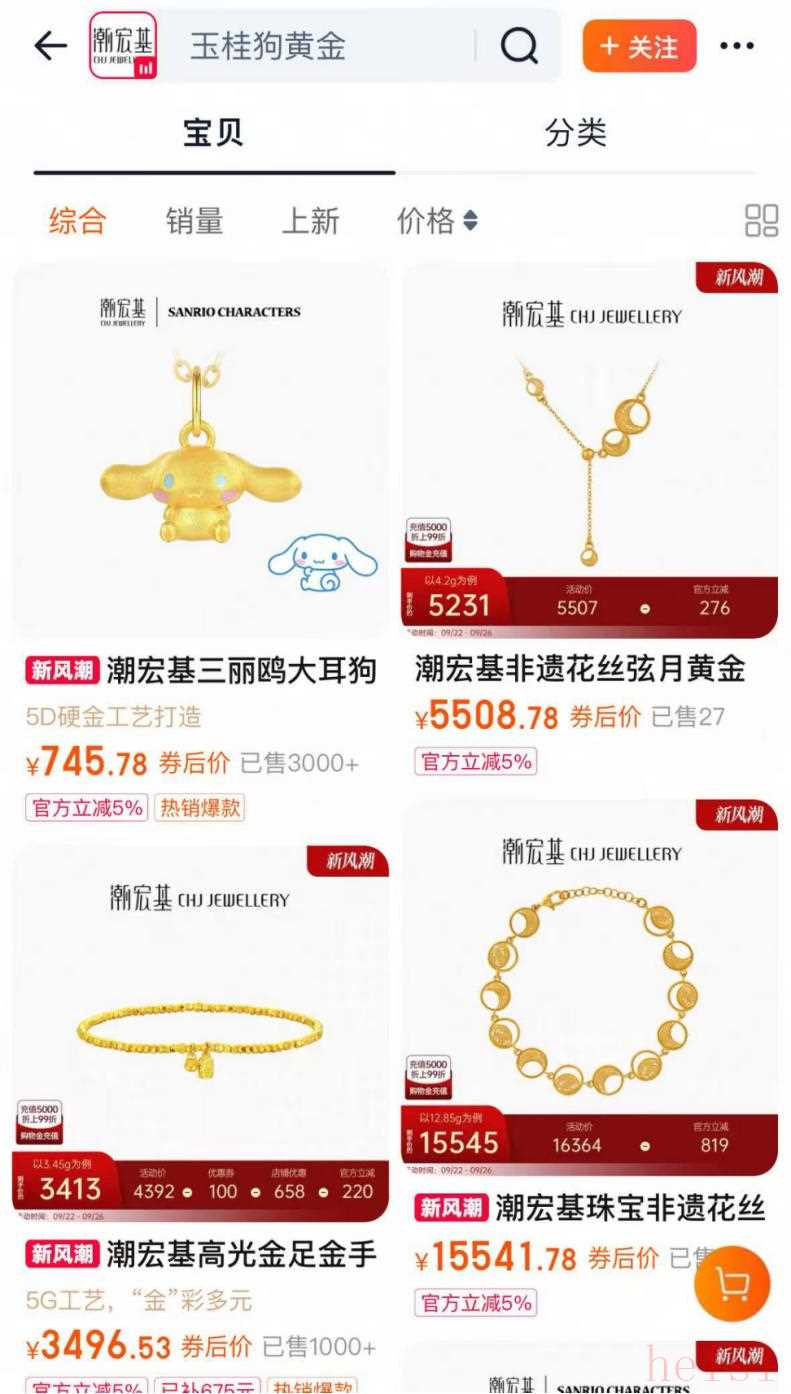 因为K金比传统足金更硬,更容易造型,可以做出更复杂和时尚的设计,潮宏基当时押注“年轻女性消费群体”,推出大量轻奢、时尚的 K 金首饰。