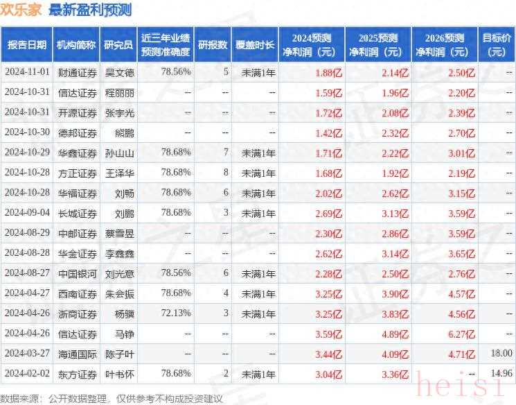 中国银河证券股份有限公司刘光意近期对欢乐家进行研究并发布了研究报告《2024年第三季度业绩点评:新业务取得进展,期待旺季环比改善》,本报告对欢乐家给出增持评级,当前股价为12.06元。