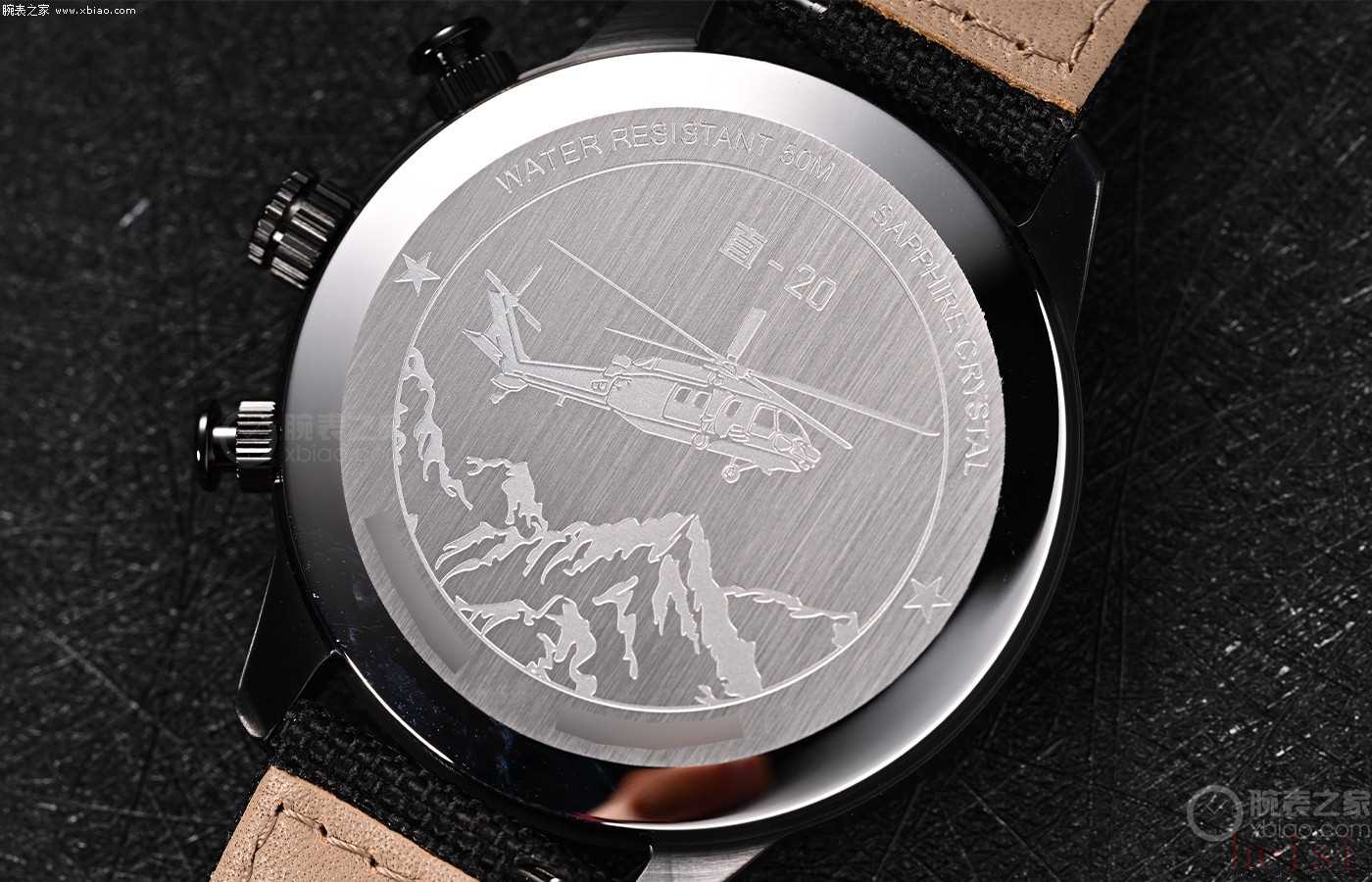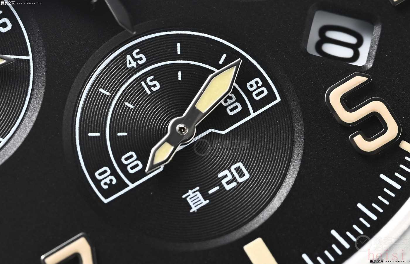 时标、阔剑形指针、计时盘指针上都覆有长效夜光涂层,确保腕表在夜航时间也能清晰显示必要时间,就像“直-20”一样,拥有出色的夜间飞行能力。