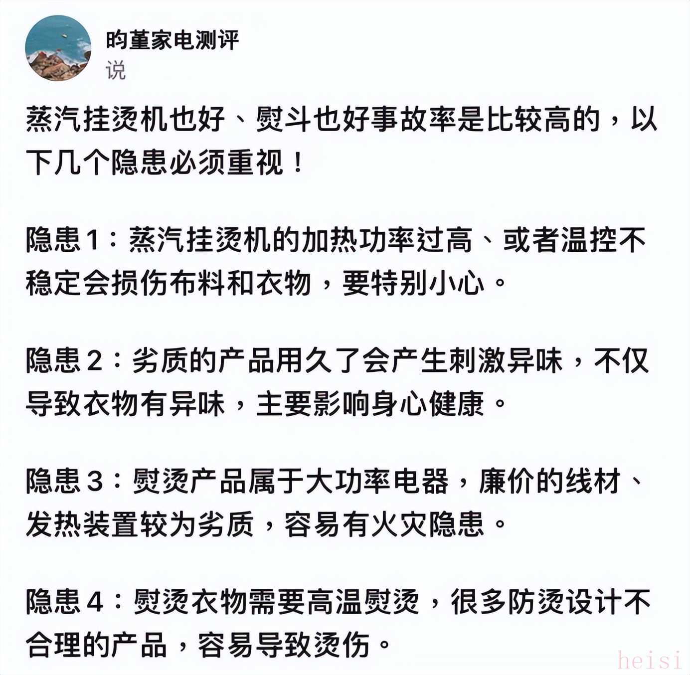 挂烫机哪个牌子好?在挑选挂烫机时,大家都希望能买到称心如意的产品,可市场上挂烫机质量参差不齐。了解其负面评价点,可以帮我们精准识别产品缺陷,避免买到不好用的挂烫机。那挂烫机的负面评价点究竟有哪些呢?1.蒸汽量不足不少消费者反馈,购买回家的挂烫机与商家宣传情况不符,实际蒸汽量小,经过长时间熨烫仍无法达到理想的除皱效果。2.容易打湿衣物