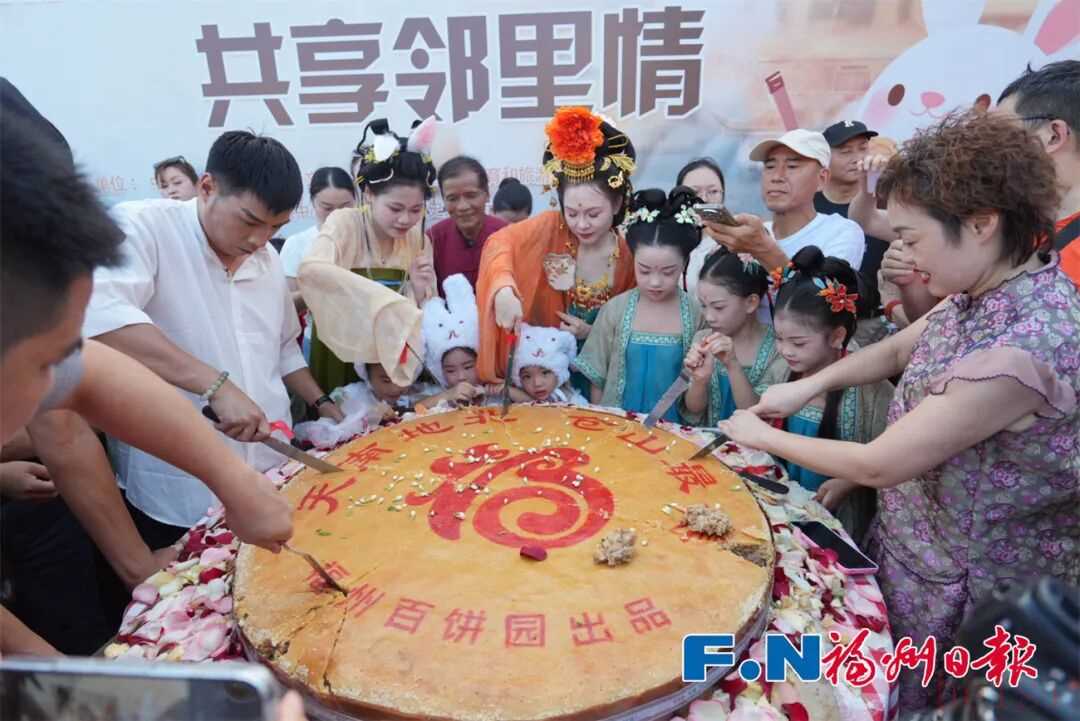 5日下午,“花好月圆夜 共享邻里情”仓山区中秋民俗活动也在梁厝举行。一袭飘逸仙裙的“嫦娥姐姐”携数名身着萌趣兔子服饰的“兔宝宝”,将一朵朵洁白素雅的茉莉花递到市民手中,传递节日祝福。“茉莉仙子”翩翩起舞,将茉莉的柔美与中秋的浪漫完美融合。另一侧的灯谜区被市民游客围得满满当当,内容涵盖传统中秋习俗、趣味生活常识、经典诗词典故。摆塔习俗体验区同样人气十足。大家在亲手操作中感受传统技艺的精巧,触摸民俗文化的温度。阵阵祝福声中,全场市民游客共同分享全市最大的月饼,甜意从舌尖蔓延到心底。夜幕降临,随着悠扬的旋律,极具传统韵味的拜月仪式开始。身着传统服饰的工作人员,手持祭月礼器,按照古礼流程依次完成净手、献爵、读祝文等环节,每一个环节都遵循古礼,庄重而肃穆。