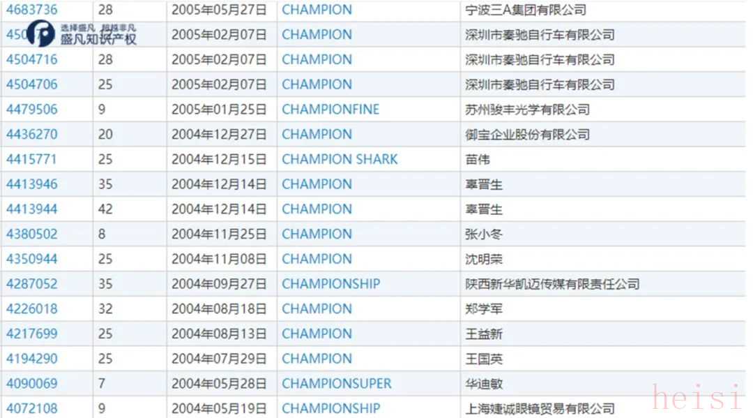 这一数据反映出该商标的知名度高,跟风注册严重,也为后续Champion品牌遭遇假冒侵权、商标侵权等问题埋下隐患。