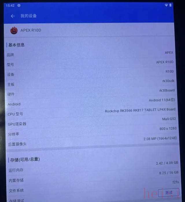 测试图上显示,这个平板用的是瑞芯微RK3566处理器。这个芯片以前常在电视盒子里看到,性能还算可以。