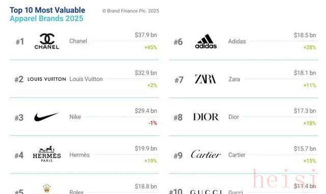 这则消息指出,全球第一服饰品牌的排名发生了变化。在这个排名中,古驰位列第10,而爱马仕排第4,路易威登(LV)则位居第2。这一变化可能反映了各品牌在不同市场、产品线以及营销策略上的表现差异。品牌排名的变动通常与多种因素相关,包括但不限于销售业绩、品牌影响力、消费者偏好以及全球经济环境等。对于时尚行业来说,了解这些排名变化有助于洞察市场动态和品牌策略的成效。