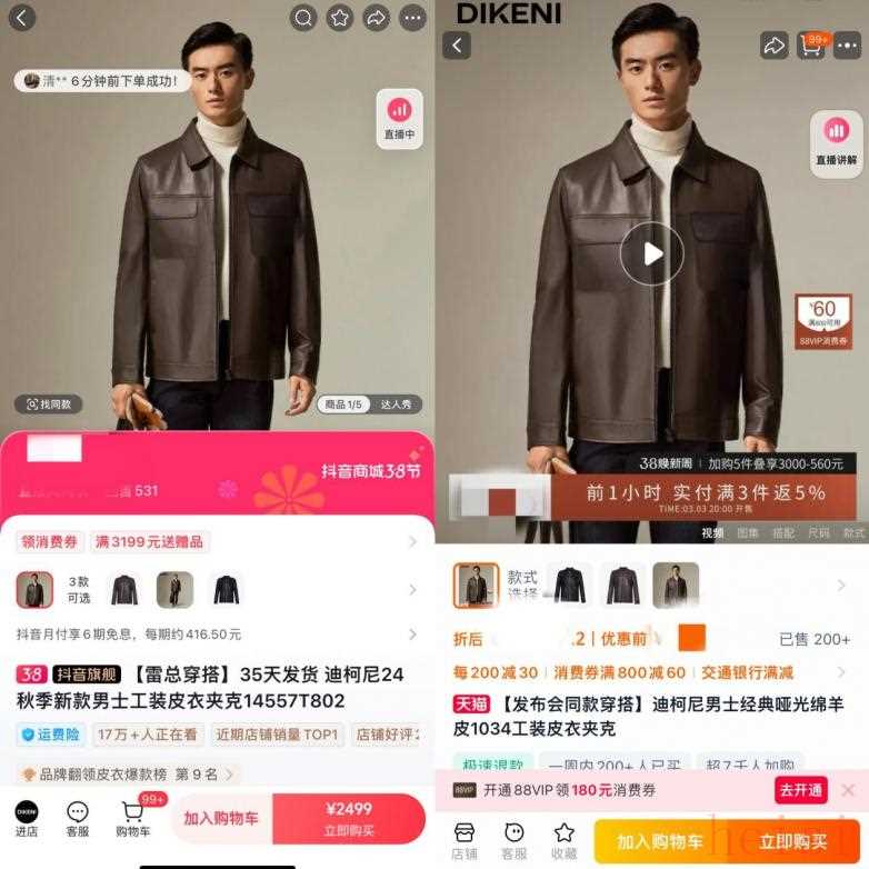 2月27日,在小米的新品发布会上,雷军身穿的棕色皮衣引发了网友们的热烈关注。在3月2日晚的直播中,雷军回应发布会上的穿衣被质疑抄袭问题,“好像难道我一穿皮衣就是抄黄仁勋,一穿一件西服就是抄马斯克,这真的太太滑稽了……”雷军还表示,在认识黄仁勋之前,每个人家里都有一件皮夹克吧。对此网友们调侃道,留给雷总的选择不多了。雷军在直播间还提到,后来听说那个厂商的皮衣五分钟就卖光了、断货了,现在补货要等一个月。据报道,这款5分钟就卖断货的同款皮衣源自中国高端男装品牌DIKENI迪柯尼。在发布会之后不到24小时,DIKENI迪柯尼就精准承接住这波流量,在抖音直播间打出“发布会同款穿搭”标签,并同步在天猫、京东等平台上线,引发全民疯狂种草和抢购。