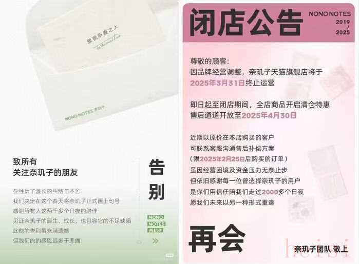3月5日,创立于2019年的新锐美妆品牌奈玑子在小红书发布品牌告别信,称奈玑子各平台官方店铺将于2025年3月底陆续停止销售,售后服务将持续至2025年4月30日。截至目前,奈玑子天猫旗舰店已发布闭店公告,称店铺将于2025年3月31日终止运营。