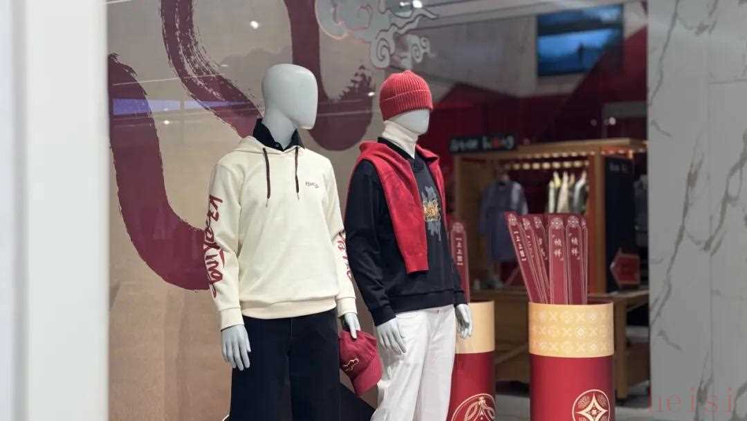 1月9日下午,记者走入劲霸男装位于普陀长风地区的专卖店,注意到黑白连帽卫衣上“野火春风”印花、中式交叠领卫衣延续品牌首创的“交叠领”设计被放在店铺最醒目的位置……独特的设计吸引了不少年轻的市民前来选购。“新中式的风格让这些传统的卫衣、开衫有了新感觉,看完电影后我迫不及待的想来买一件试一试,这不仅是电影周边,也是百搭单品。”一位年轻的消费者说。
