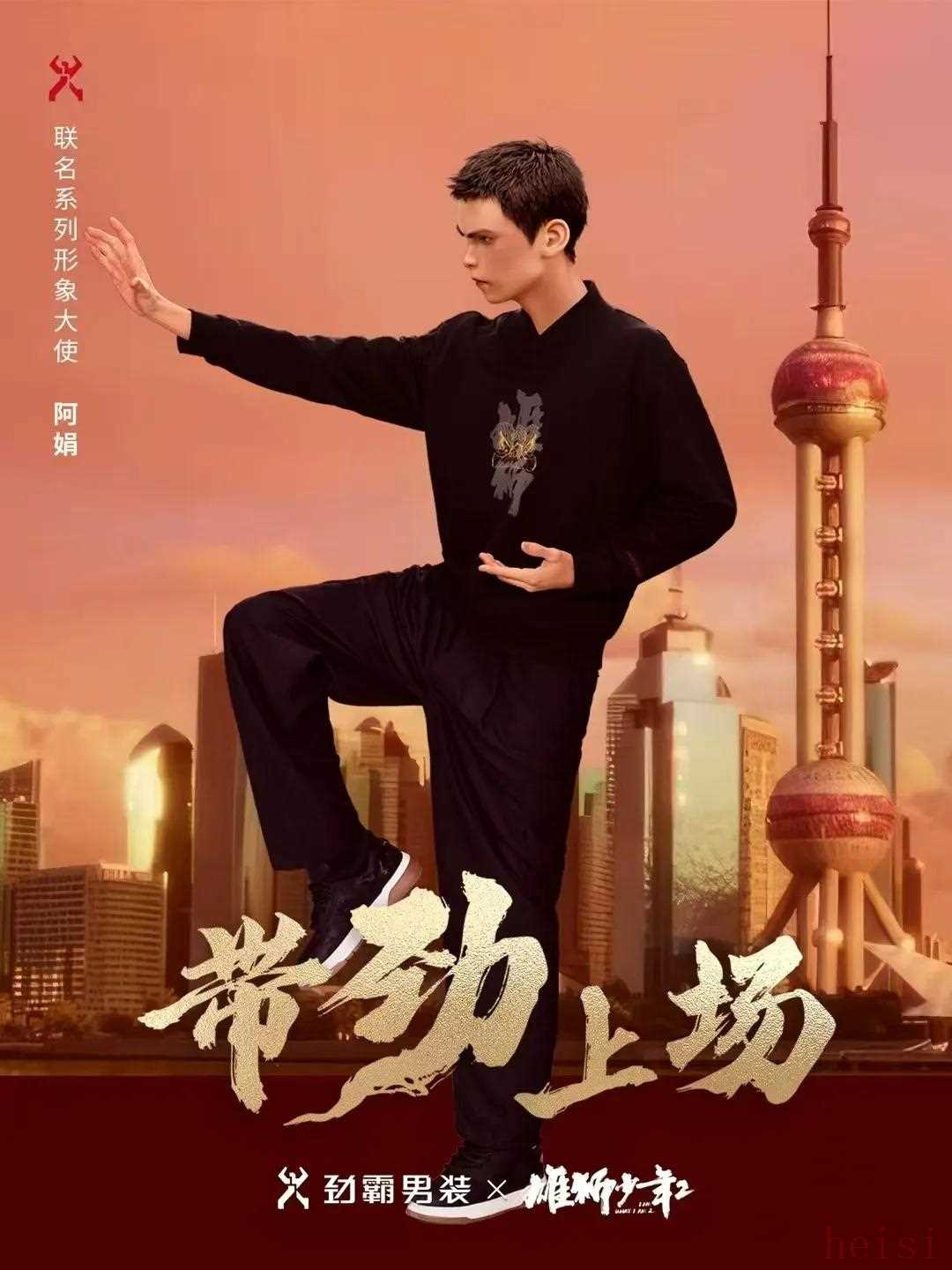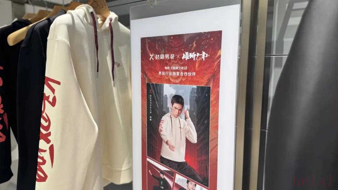 电影中的传统美学服饰,现实生活里在劲霸男装专卖店也有呼应。劲霸男装特别推出了电影联名系列,“心有雄狮”联名卫衣选用电影主角为形象大使,这也是品牌历史上首次将动画角色纳入联名系列形象大使阵容的创新尝试。