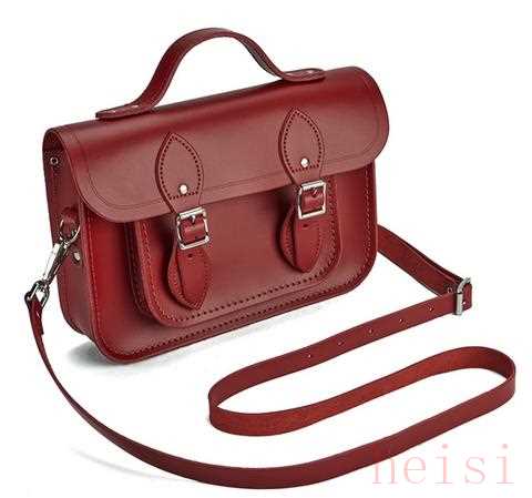 欢英伦风的值友们对剑桥包肯定不陌生,而最早的剑桥包就是源于这家Cambridge Satchel公司,后来才逐渐在其他品牌中出现类似款式的包包。这款红色剑桥包,外形保留了最经典的剑桥包款式,一个主袋和偏小的侧袋,磁性暗扣,可调节肩带,构造简单,通体100%牛皮材质,触感舒适。这款大小为11英寸,具体尺寸:19cm x28cm x5cm,属偏小型号,不能装太多的东西,但是因其独特造型,非常适合出街搭配,风格浓烈。
