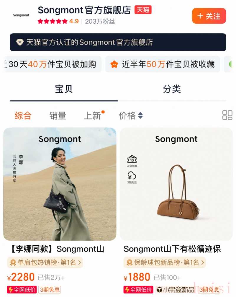 而山下有松作为近年来崛起的本土设计师品牌包袋代表,凭借其独特的东方美学设计和亲民高质的定价,迅速在市场中占据一席之地。品牌价格集中在千元档位,瞄准追求设计感与实用性兼具的年轻都市消费者。尽管山下有松未公开具体营收数据,但2024年该品牌在天猫渠道的销售额近5亿元,去年双11销售额位列箱包榜第二(国产箱包品牌第一)。虽然从定位来看,LV与山下有松的竞争关系并不强。LV是传统奢侈品,山下有松勉强挨着“轻奢”的边。