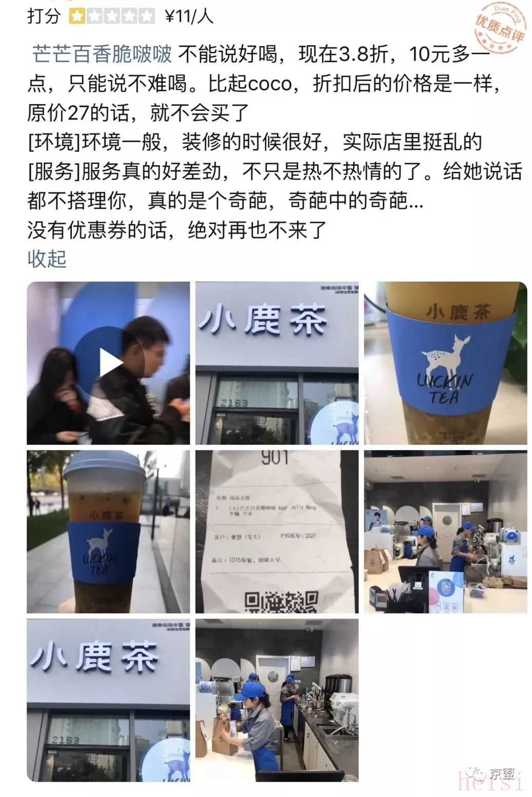 而且,从点评网站的评价来看,小鹿茶北京SOHO尚都南塔店正式营业后,抢鲜打卡的顾客对此褒贬不一,“店面小”、“服务态度差”等问题均出现在评价中,其中不乏明确表态“永远不会再买”、“绝对再也不来了”……