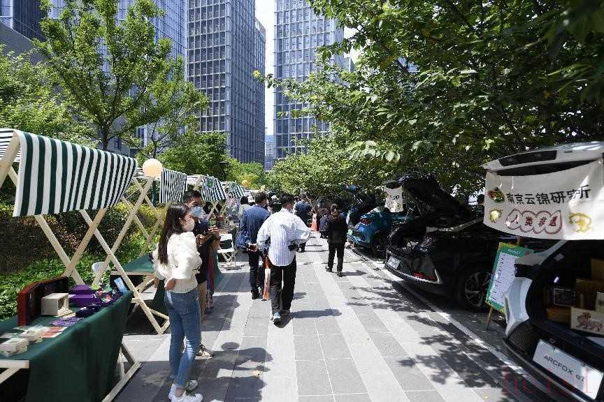 5月18日上午,在河西CBD金融城融媒路,“2022江苏省新能源汽车&信息消费创新产品推广系列活动启动暨交汇点‘花漾市集’开街仪式”火热开启。各大新能源汽车展位前、各式科技信息产品体验区, “烟火气”十足的“江苏味道”中,围满了前来消费“赶集”的人群,河西CBD顶流商圈的消费热情被人潮“点燃”。