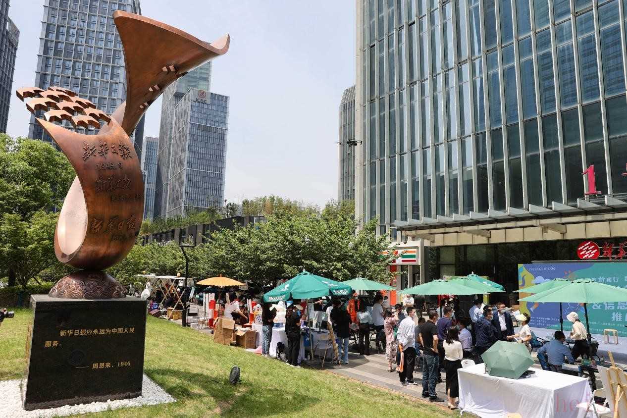 沿着融媒路从南走向北,理想、蔚来、极狐和小鹏等17个新能源汽车品牌,24款车型依次排开,打开后备箱扮靓市集;华为、科大讯飞、大疆、创维、欧帝等头部品牌信息消费展商带来53件科技信息产品,让人们感受未来生活的模样;金陵饭店、新华传媒酒店、南京云锦传承人、秦淮非遗传承人各展技艺,带来十足的视觉和味觉体验;花朵红包墙、《新华日报》生日报、点点娃娃机、花漾套圈抽奖等多种互动游戏更是让不少人参与其中,流连忘返。