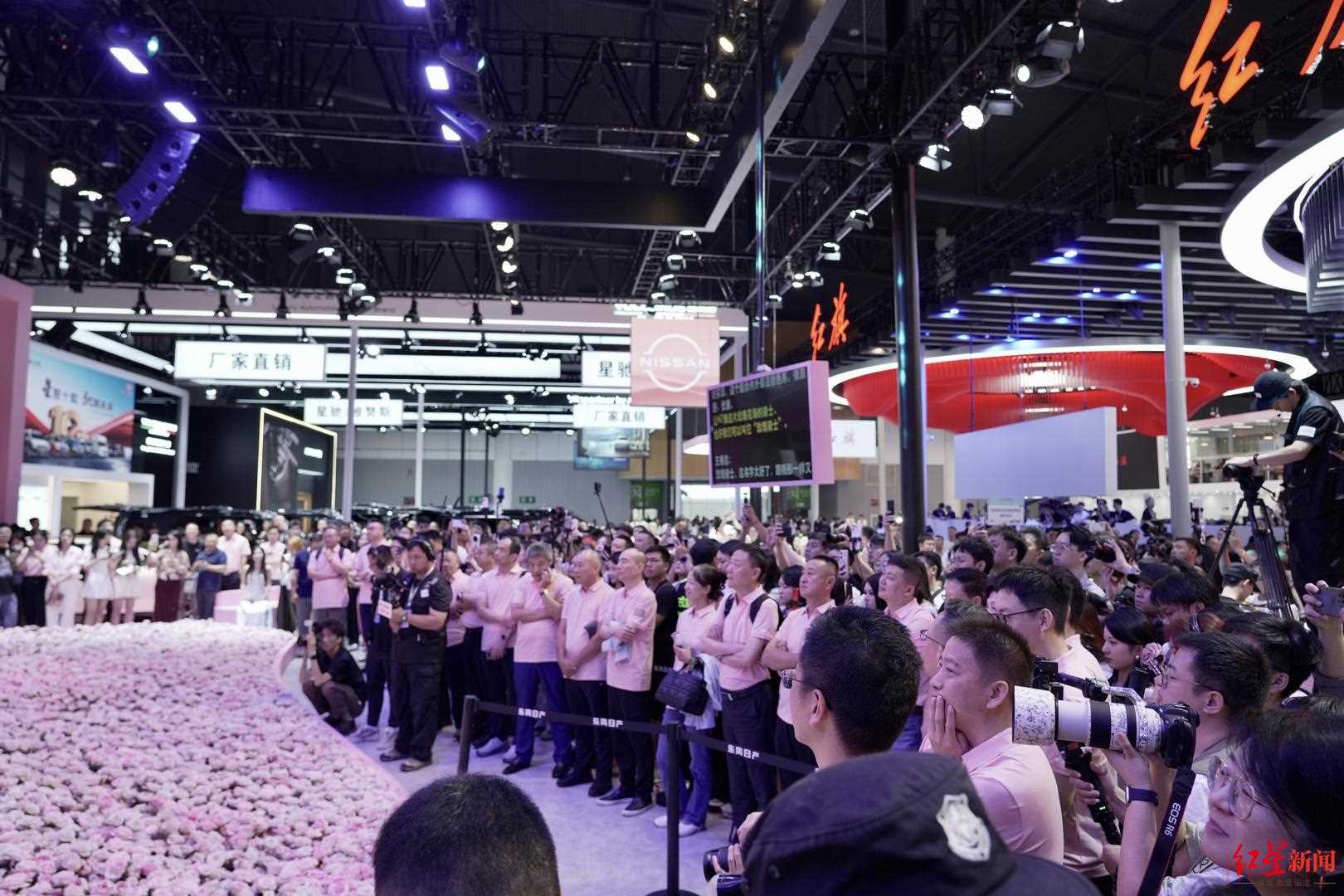 16号馆的东风日产展台,以数千朵玫瑰营造出梦幻的“粉色海洋”吸引了众多游客驻足拍照。上午10点左右,人气演员毛晓彤以一袭白裙在该区域亮相,现场顿时爆发出阵阵欢呼与掌声,吸引众多观众驻足拍照。