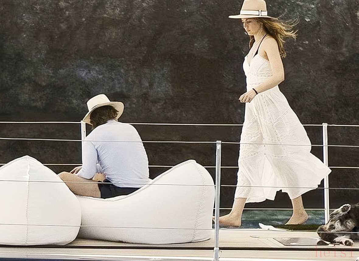 度假穿搭是爱情的皮肤,藏着最松弛的亲密。阿汤哥与安娜在梅诺卡岛的游艇造型,恰如叶芝所说:“爱情是穿过灵魂的火焰”,既保持独立姿态,又透着共生的温暖。