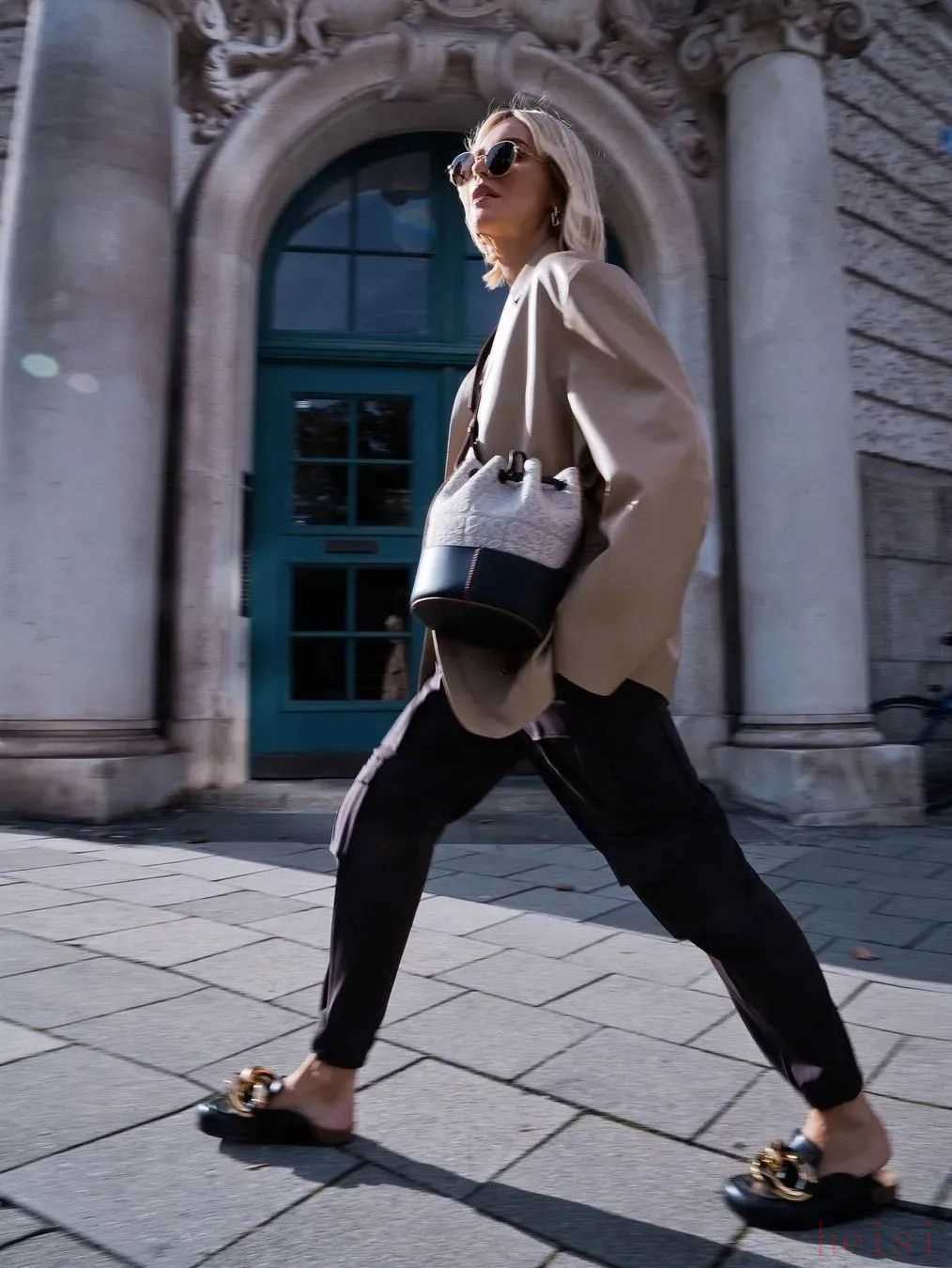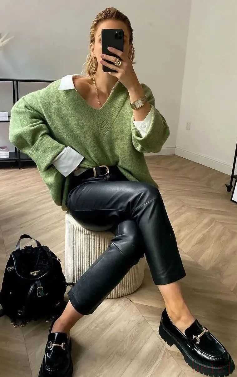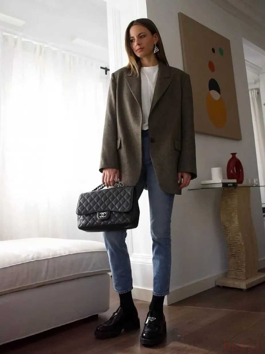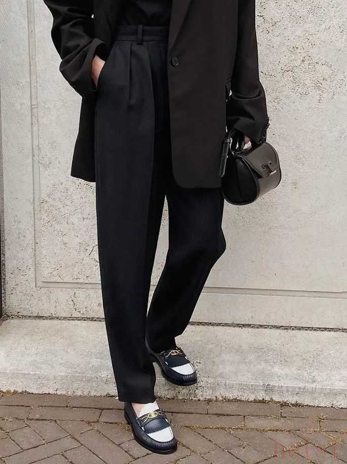 乐福鞋与直筒牛仔裤、西装长裤的搭配,也是极为常见的组合。只要套上西装外套或者板型挺括的风衣,轻松搞定秋季休闲时髦的通勤Look,不仅穿着舒服,还很有造型感。