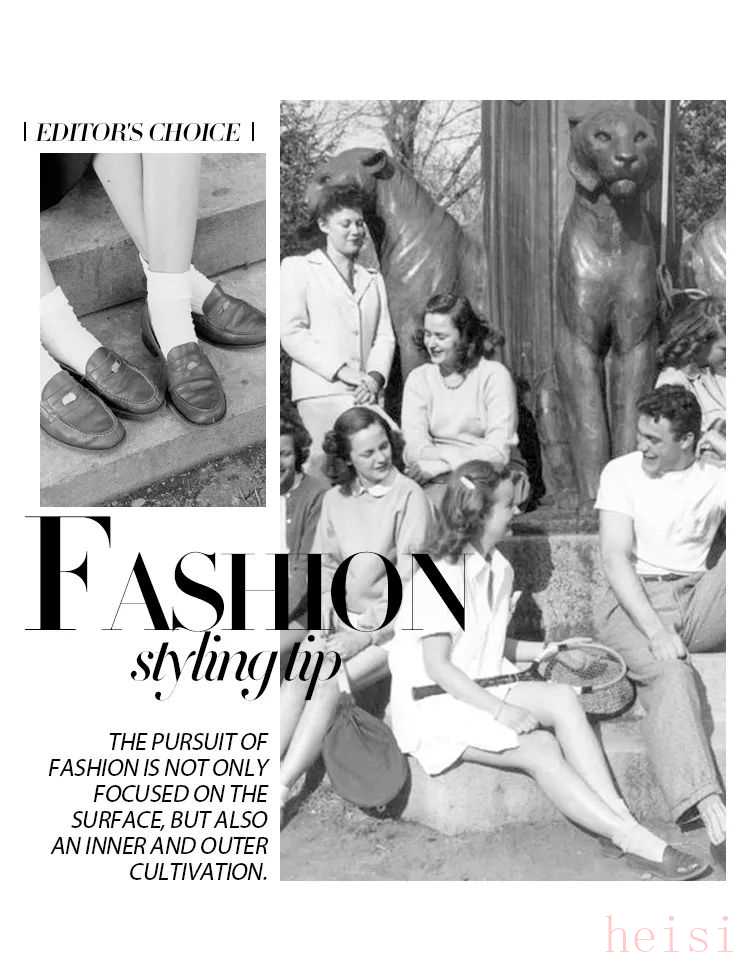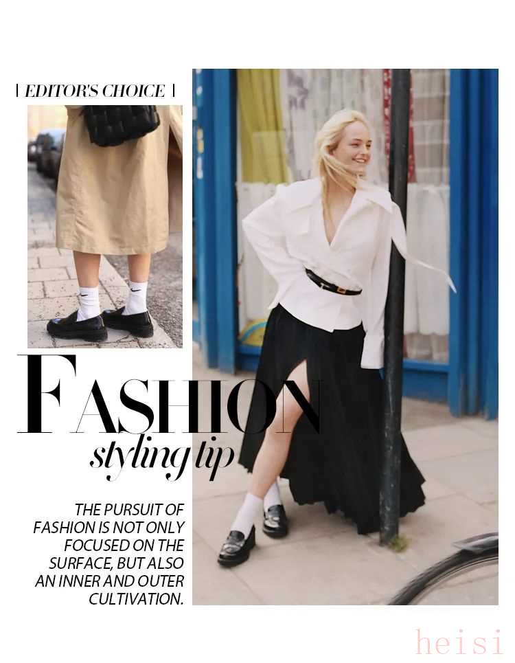 什 么 样 的 袜 子 才 百 搭最后,在穿搭时还要注意袜子的选择。乐福鞋和短袜的搭配最经典。袜筒长度选在脚踝附近就好,能打造出层次感同时,也为穿搭加入几分正式感。