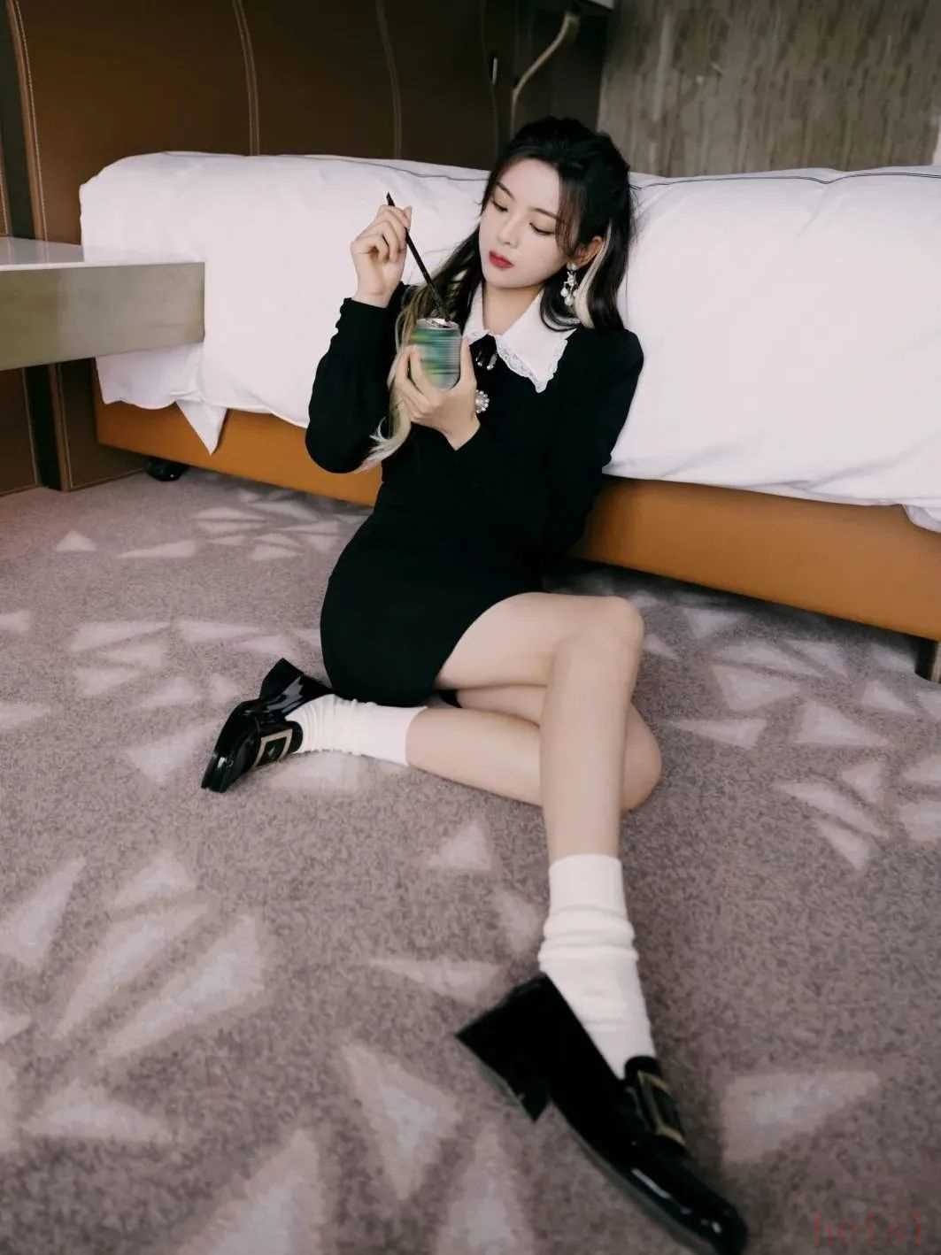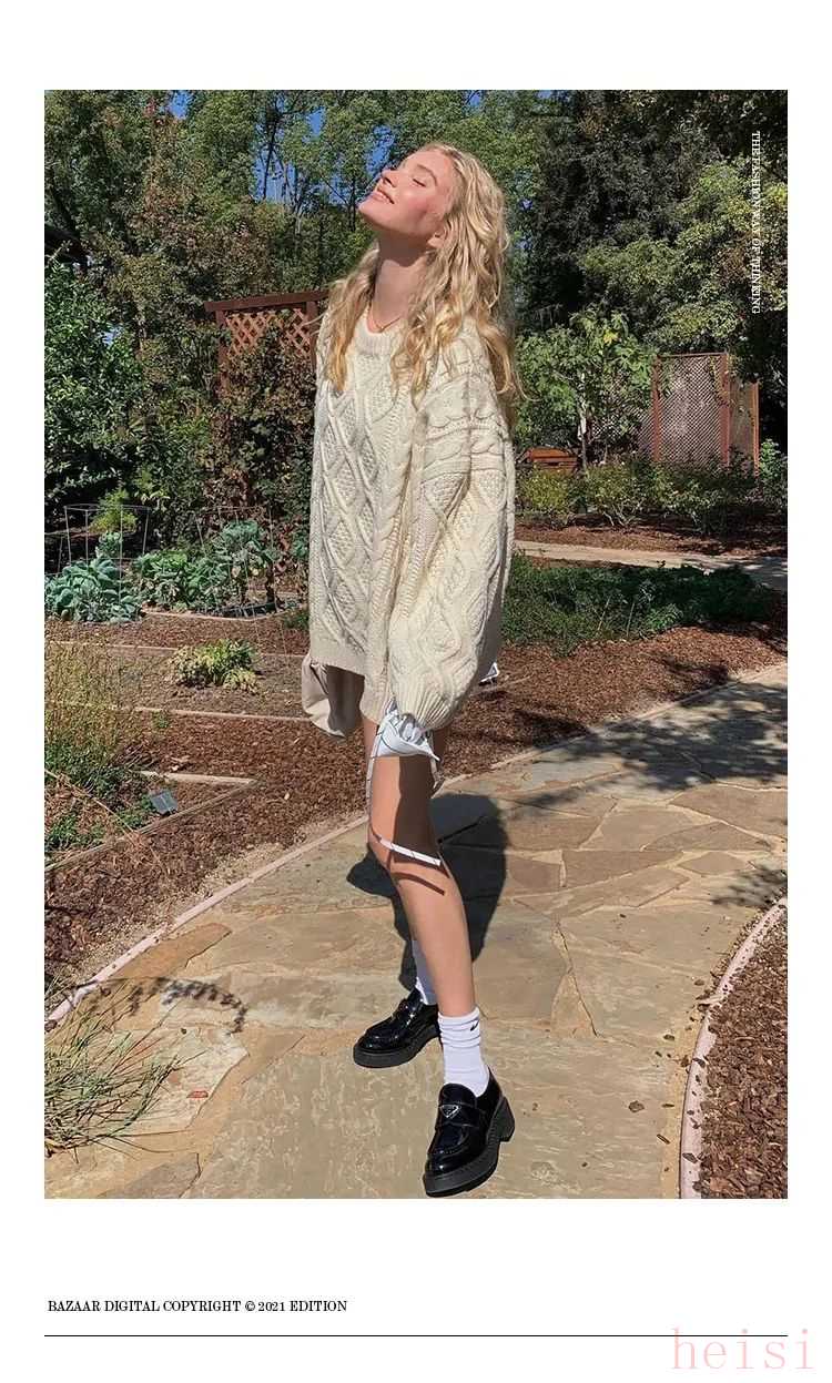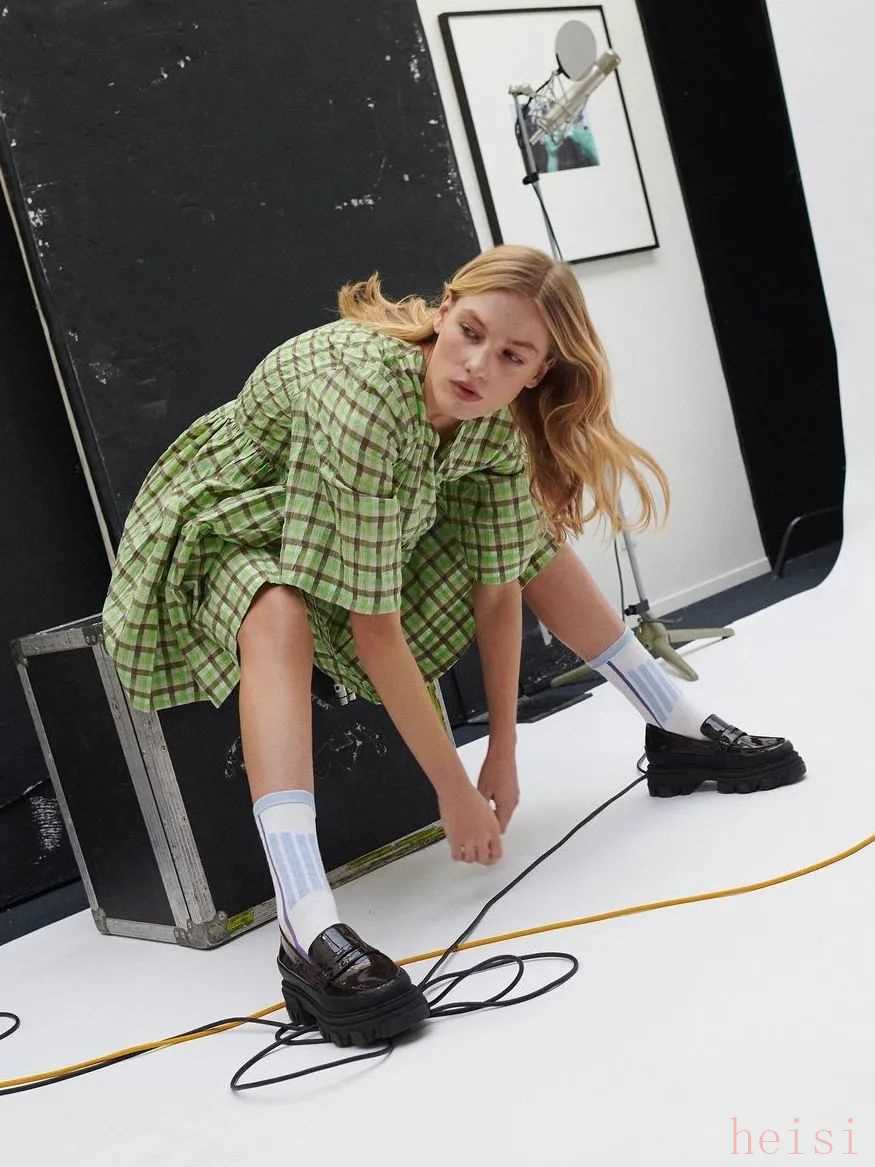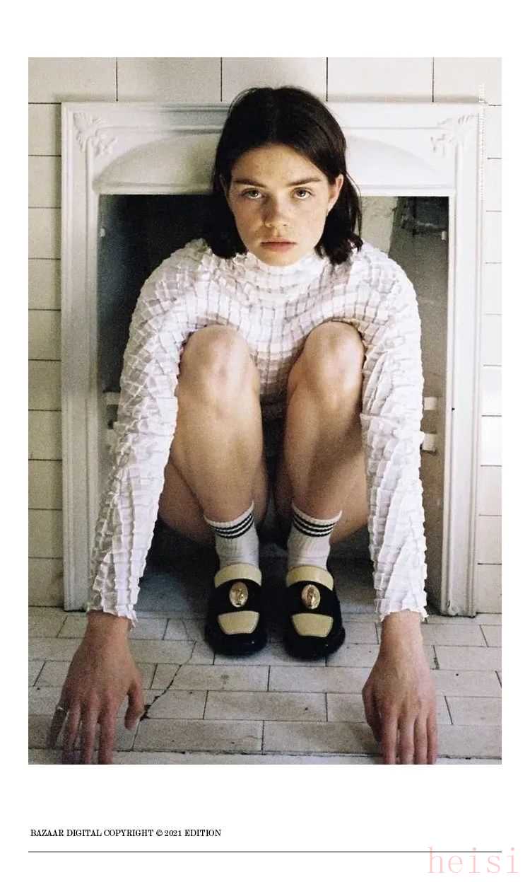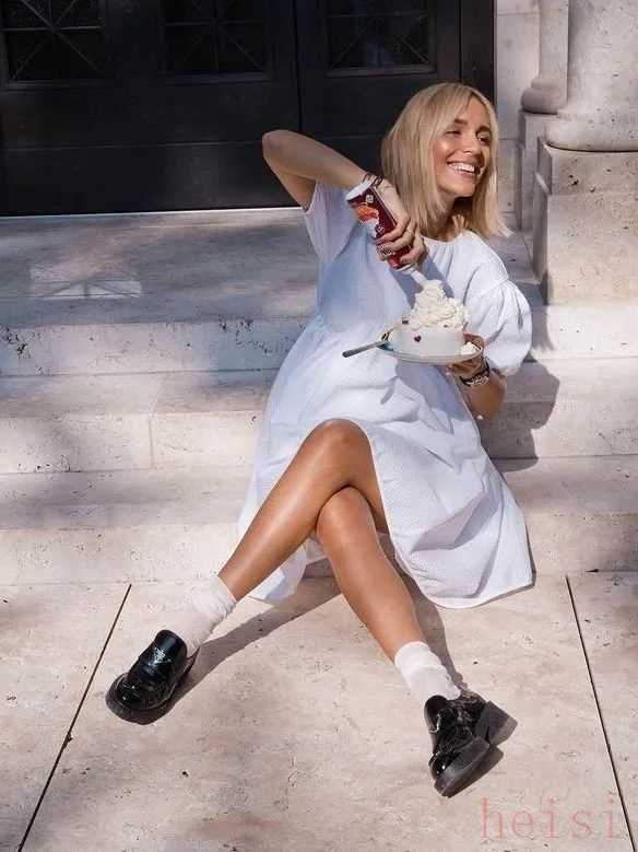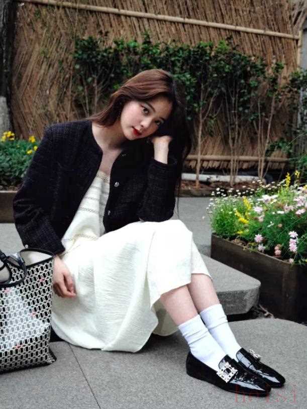 当然了,更可爱的娃娃裙也可以搭配乐福鞋。两者都带有减龄属性,用乐福鞋的帅气来平衡甜腻感,俏皮中还带着酷感。