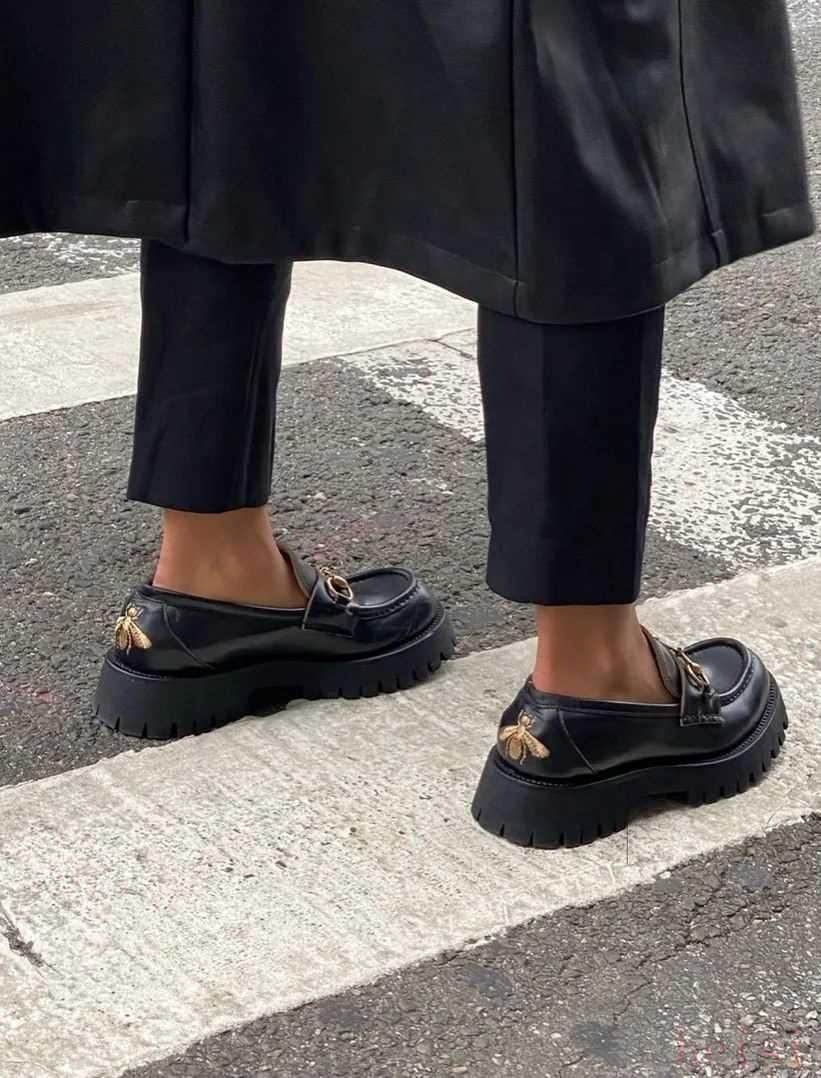 GUCCI的平底马衔扣乐福鞋向来是经典中的经典,但今年还是被新出的厚底款式抢占了风头。呆萌的圆润鞋头和锯齿状的厚款鞋底,看起来要稍微笨重一点,但挡不住它的魅力。