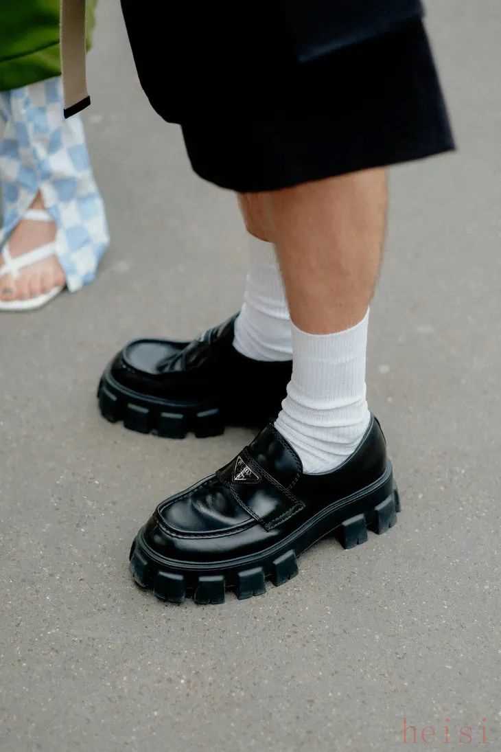 不少品牌都推出了这样的厚底乐福鞋款。像火遍全网的PRADA厚底乐福鞋,时髦精们是人手一双,厚底加上大大的齿轮看起来有点帅、有点萌,很容易将人们的视线拉到脚下。
