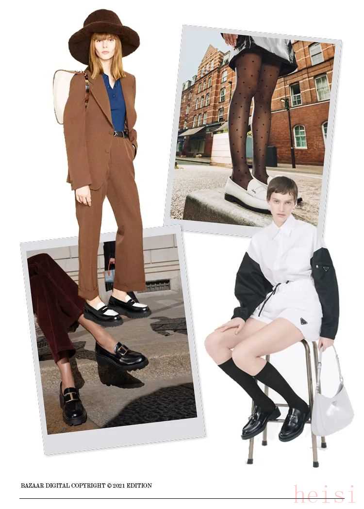 时 髦 厚 底发现了吗?这两年有不少乐福鞋都悄悄把鞋底给加厚了。鞋头变得更圆,风格更加中性,穿起来比平底乐福鞋更有气场。由于鞋底设计厚重,还能与腿部形成鲜明对比,衬托出小腿的纤细,顺带附赠隐形的增高效果,可以说是小个子女孩的最爱。